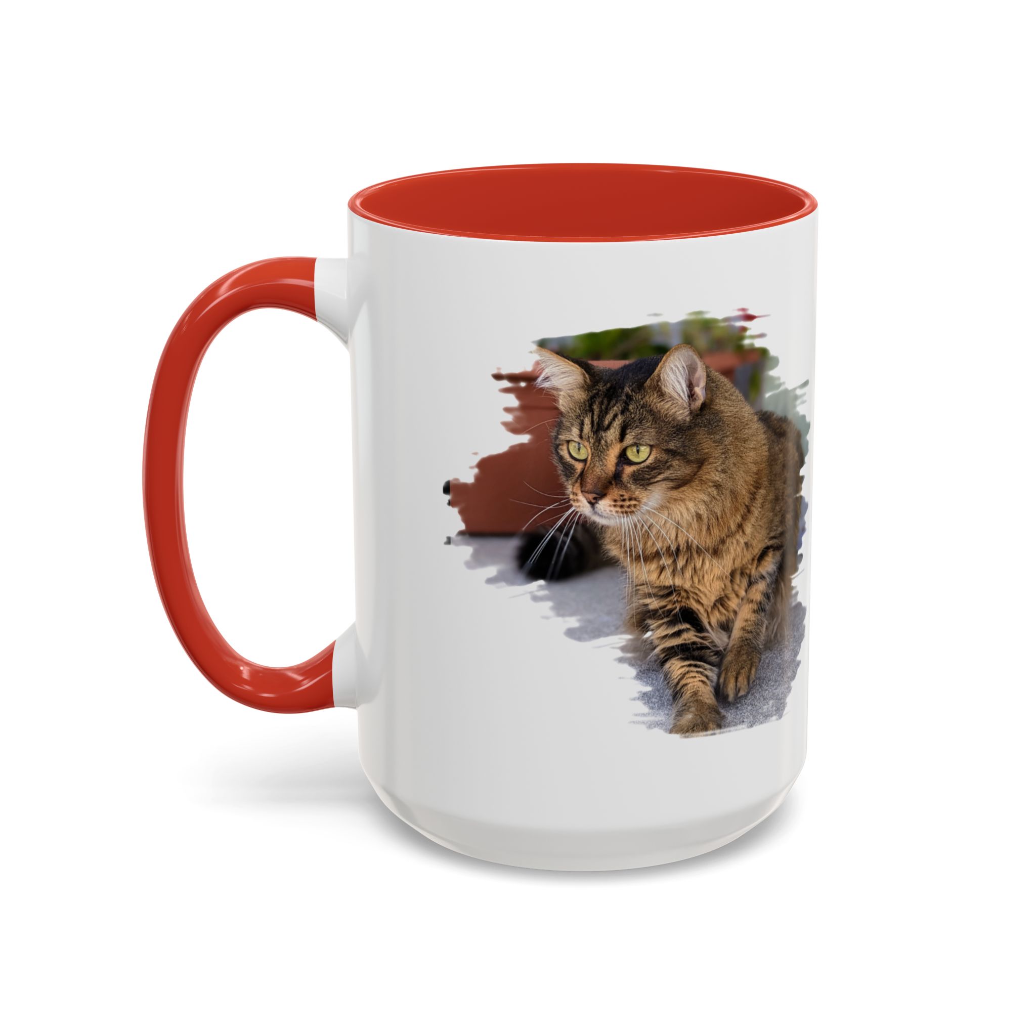 Meet your next favorite morning companion—the personalized ceramic cat lover mug. This 15 oz mug is the perfect blend of style and functionality, designed to elevate your coffee or tea experience. Crafted from durable white ceramic, it features a sleek glossy finish with an eye-catching color contrast between the interior and handle. The ergonomic C-shaped handle ensures a comfortable grip, while its lead and BPA-free construction offers peace of mind with every sip.